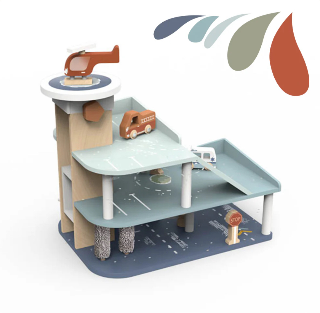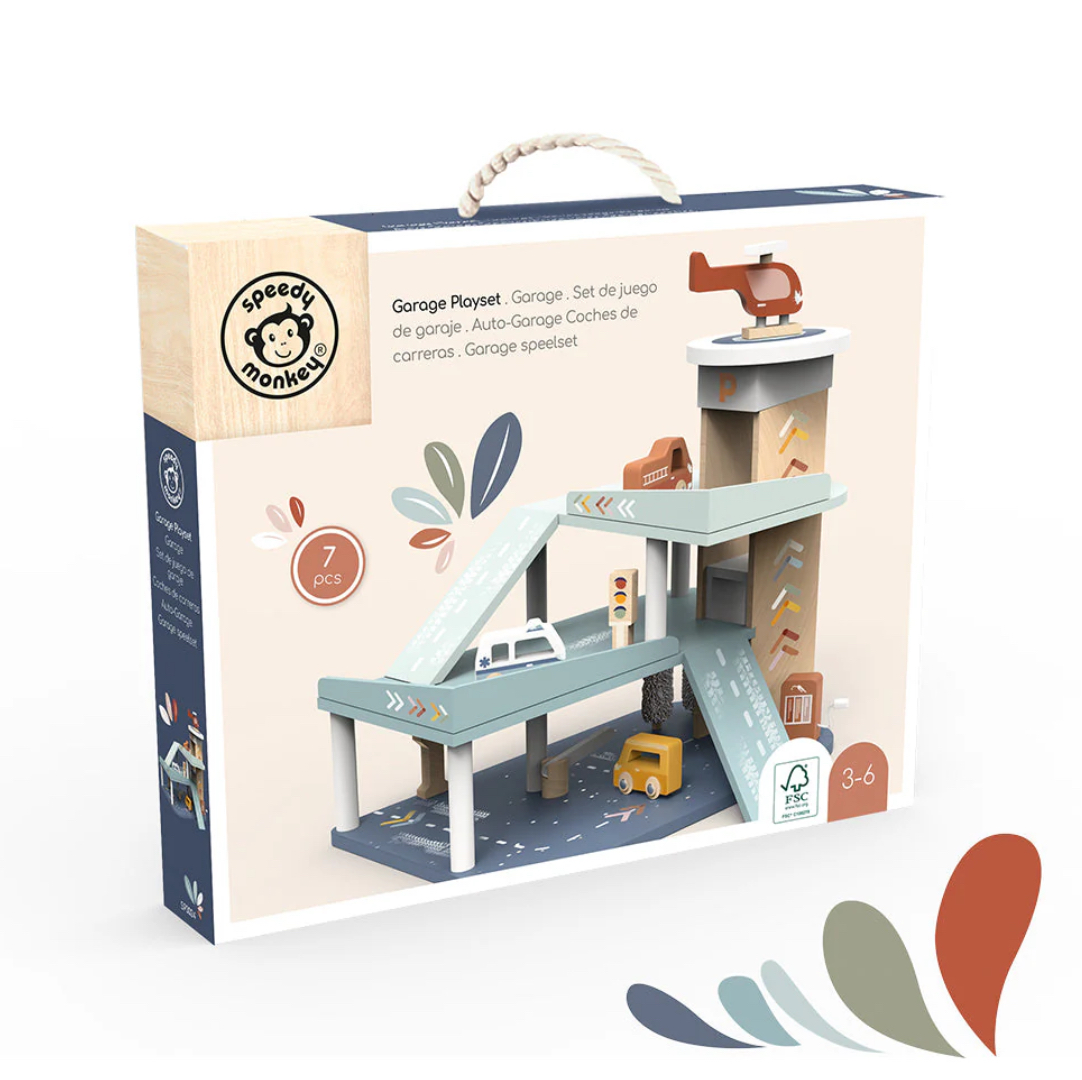 Spremite se za brzu zabavu i beskrajne maštovite avanture uz ovaj garaža set za igru. Specijalno dizajniran za decu od 3 godine i više, ovaj šareni drveni set sadrži sve što je vašem detetu potrebno za sate bezbedne igre. Sadrži 1 benzinsku pumpu, 1 stanicu za pranje, lift, 3 drvena automobila i 1 helikopter, podstičući pripovedanje, koordinaciju i kreativnost.